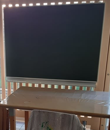 4) Als je kleuters hebt die nog veel experimenteren, is het interessant om een krijtbord te plaatsen. Op dit krijtbord kunnen de kleuters experimenteren door te tekenen in het klein, het groot, door elkaar, enz.